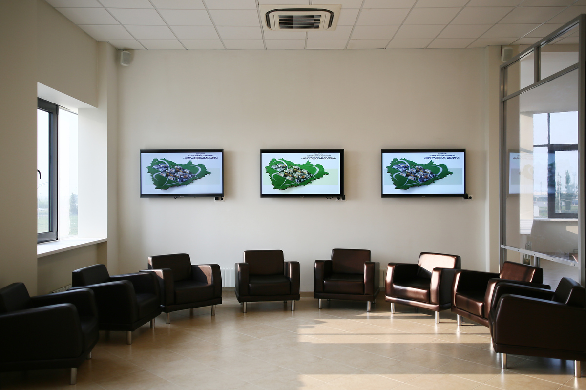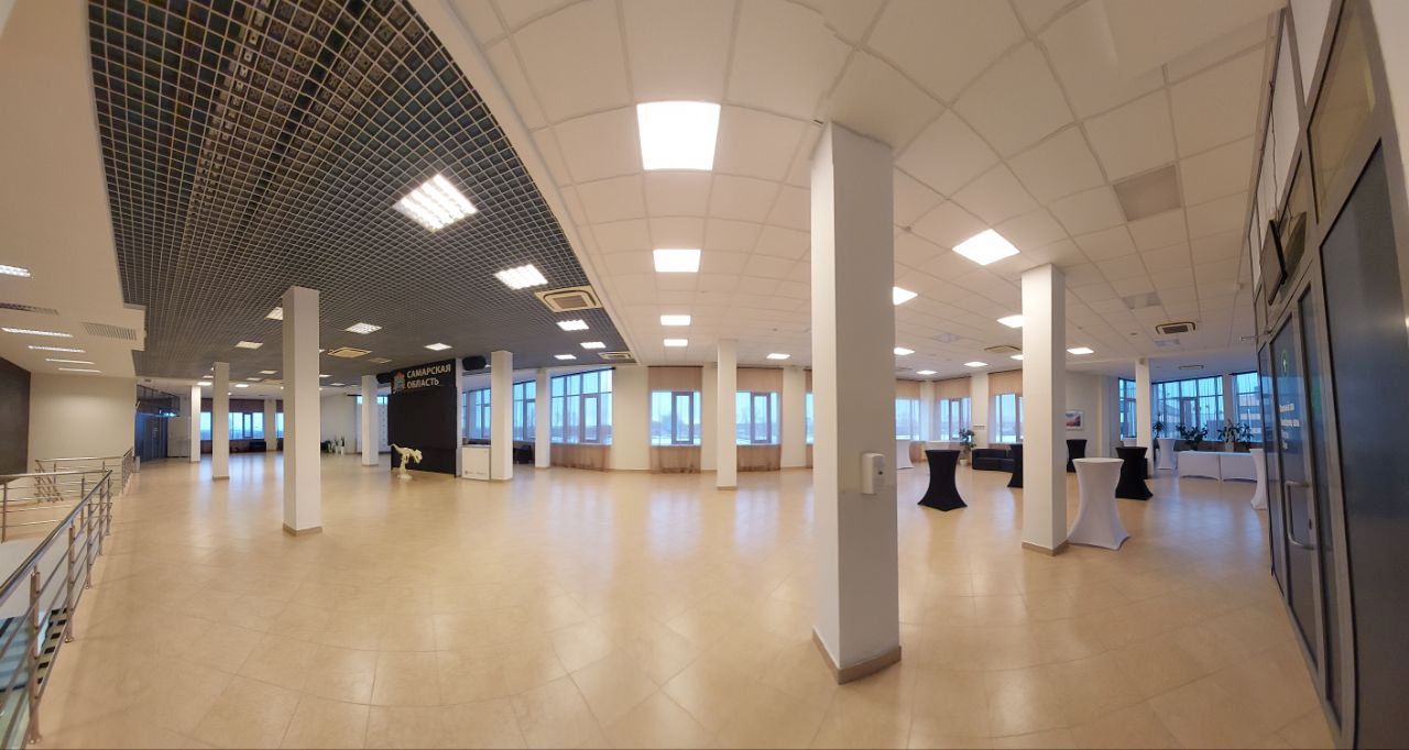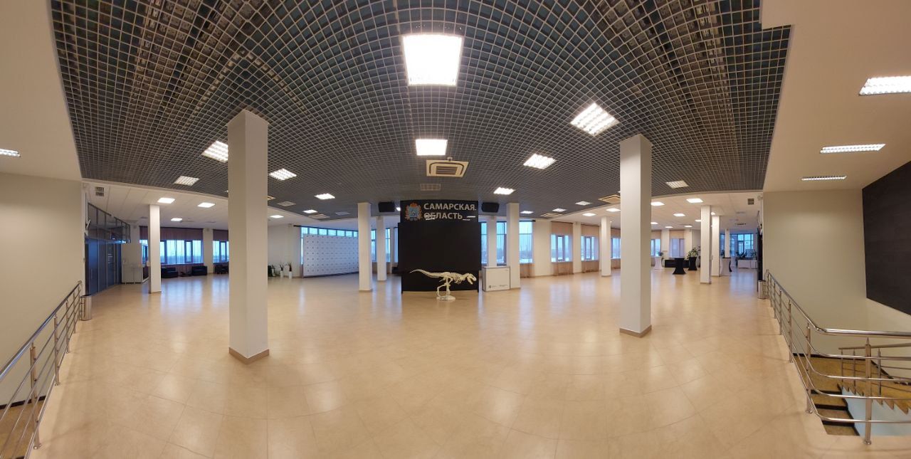 Выставочный зал удачно расположен рядом с большим конференц-залом, что значительно расширяет его функциональность. Отлично подходит для регистрации гостей мероприятия и пресс-подходов. Зал оборудован LED экраном для демонстрации любого видео-контента (в том числе онлайн трансляции из большого конференц-зала) и потолочной аудиосистемой. Большое светлое пространство идеально для кофе-брейков, фуршета и B2B-встреч.