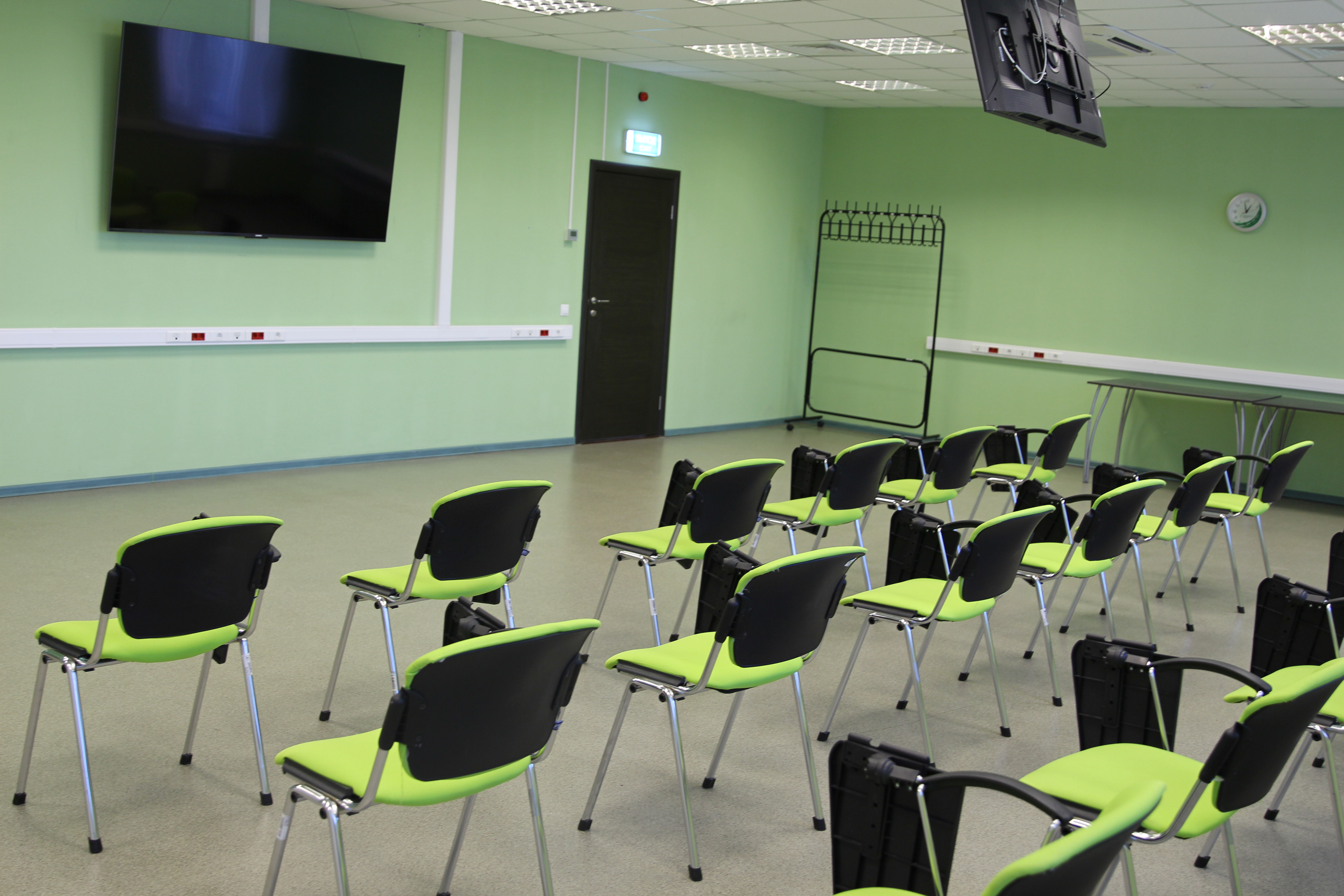 - Укомплектованный офисными стульями зал до 50 человек
